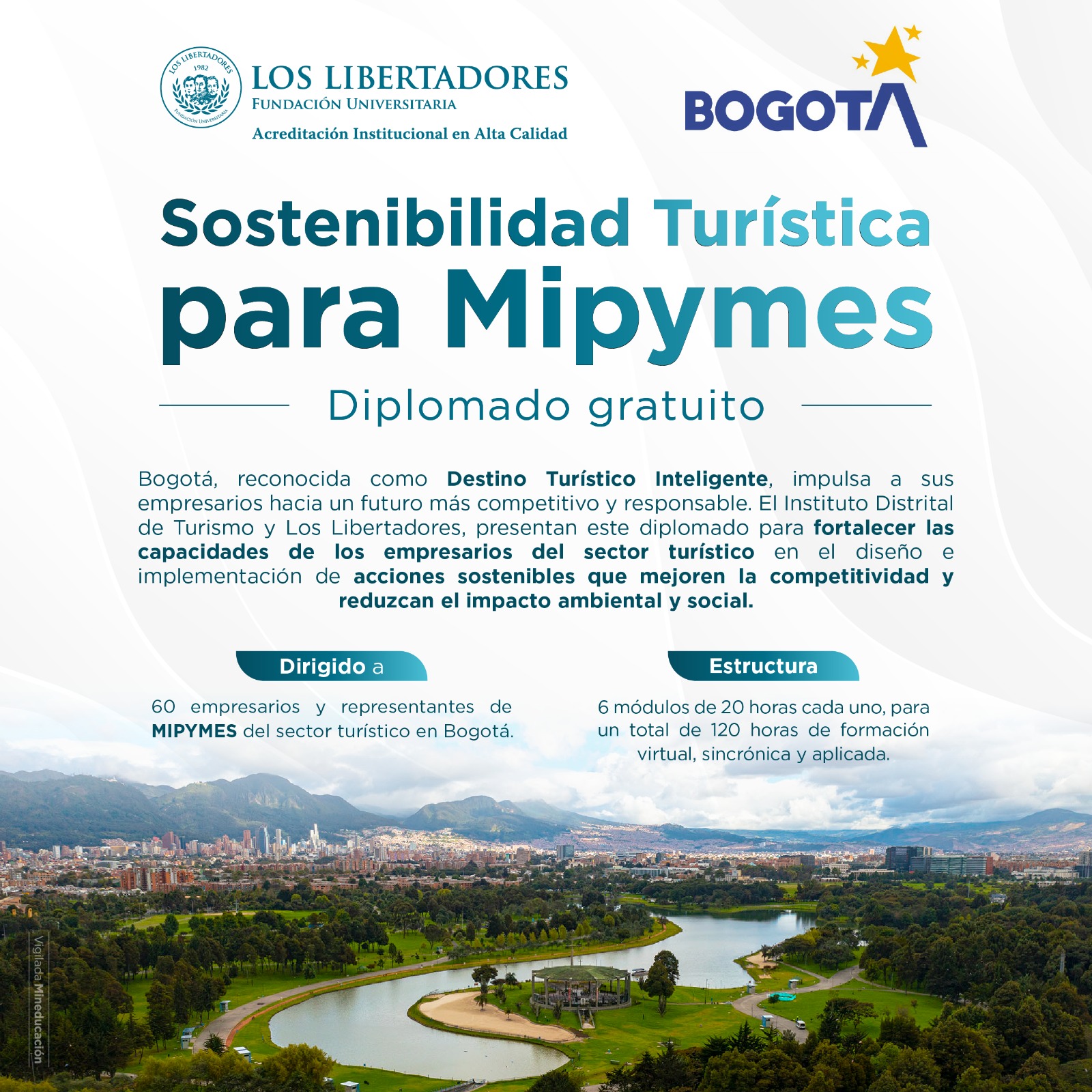 Este programa está dirigido a empresarios y representantes de Mipymes turísticas de Bogotá, con el objetivo de que fortalezcan sus capacidades, incorporen prácticas sostenibles y eleven la competitividad de sus negocios. De esta manera, se busca aportar al desarrollo de Bogotá como un destino turístico cada vez más atractivo, diverso y consciente.