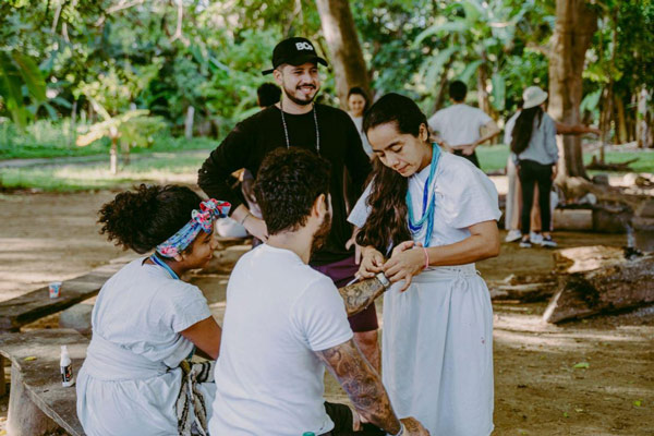 Extranjeros visitando una comunidad indígena